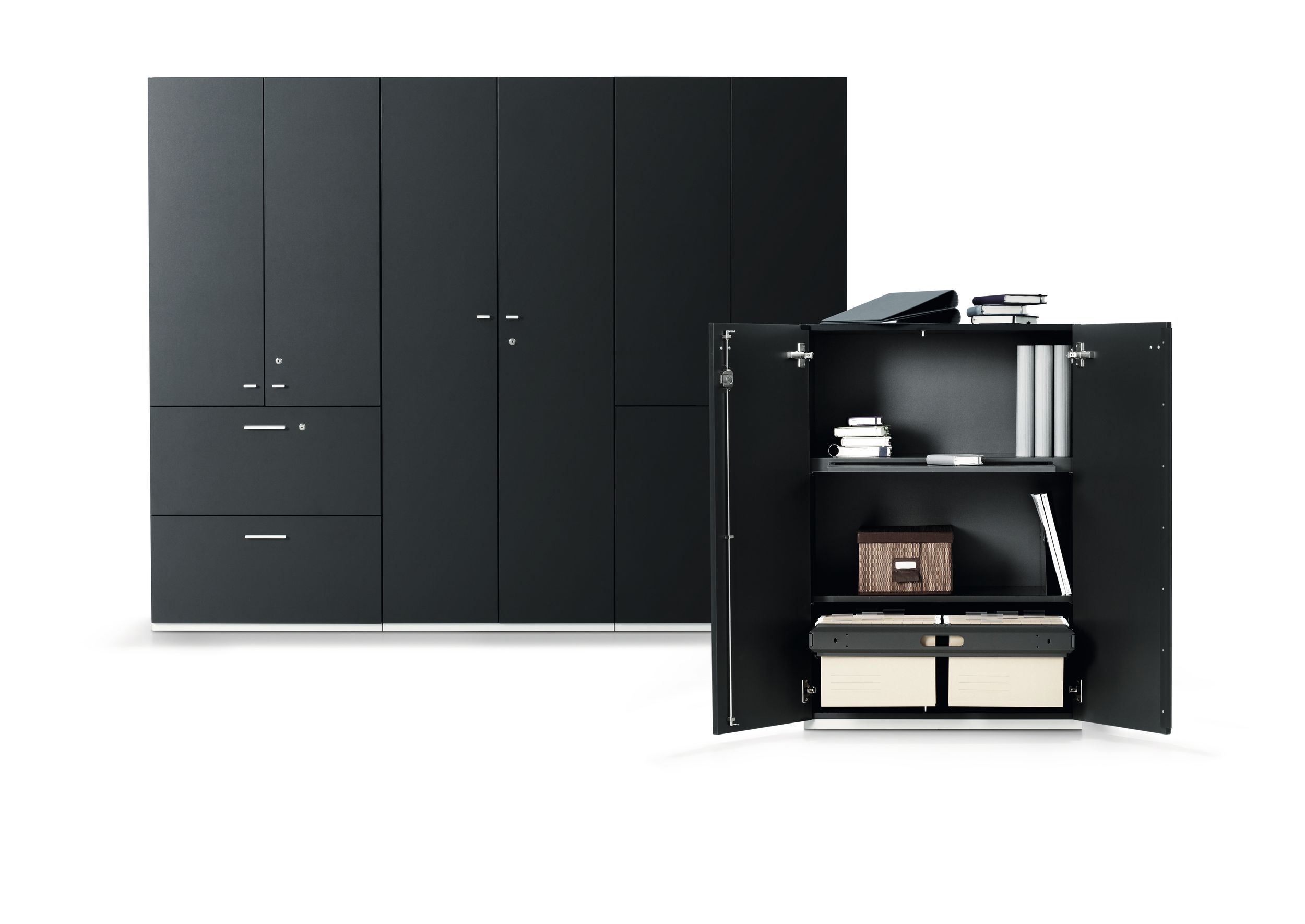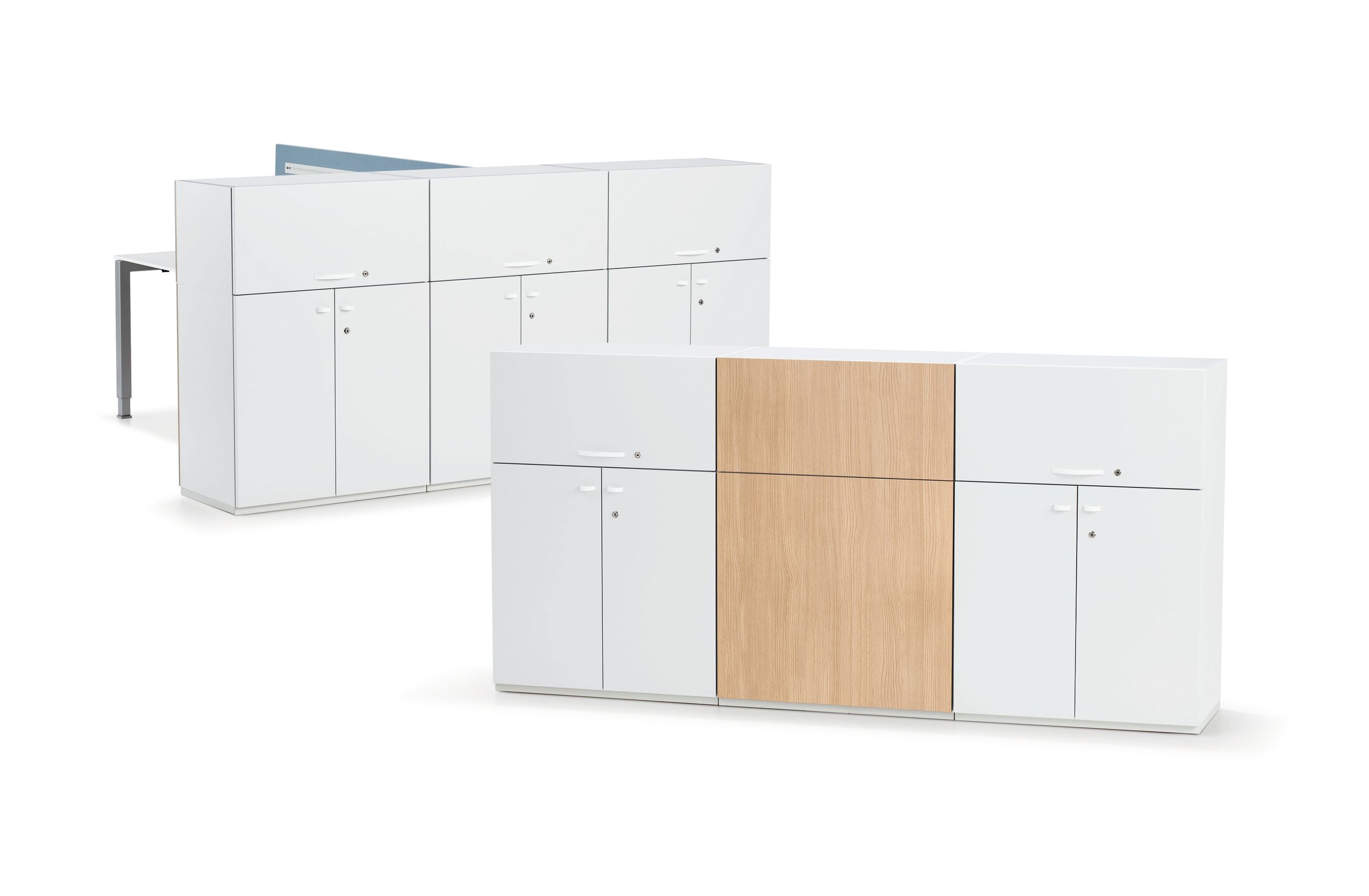 The versatile storage programme offers three items of furniture in one: open shelf unit, closed cupboard with tambour front, hinged door or sliding door, or filing cabinet with pull-out. And: the decorative back panel also makes ACTA.Plus ideal for use as a room divider! When it comes to creating a pleasant atmosphere suitable for working, ACTA.Plus has something else to give: the fronts are also designed to be acoustically effective. This makes ACTA.Plus your perfect partner for minimising noise and allowing discreet conversation – even behind closed doors.