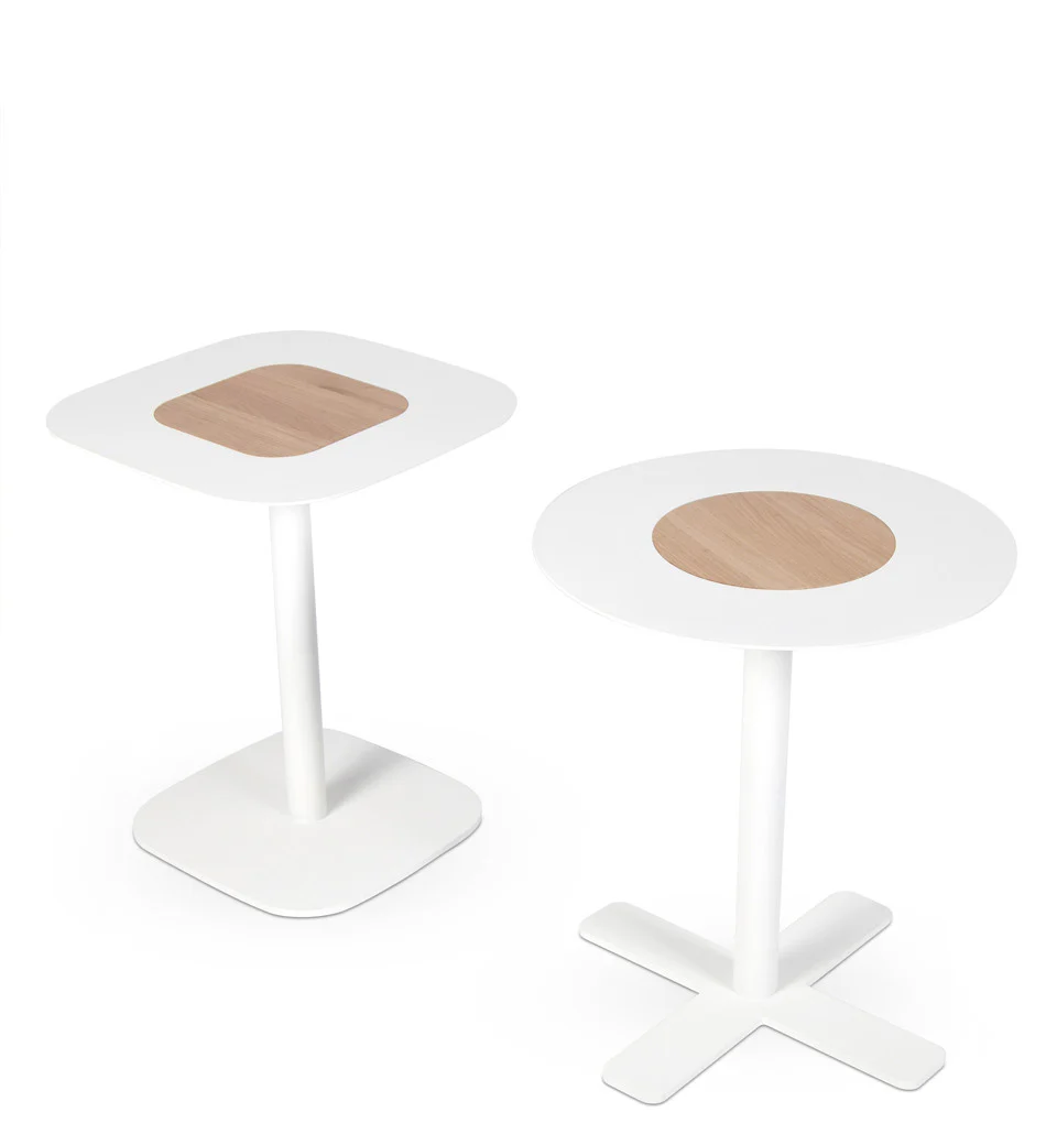 The Blush family is a compact and playful furniture solution. Because of their size they can easily be moved around and be used for a variety of purposes. Creating an attractive, discreet caricature wherever they stand. These tables feel right at home in a living room, lobby area, library, working place or any waiting room, making them look colourful, elegant and fun. Blush occasional and side table tops are available in either steel/wood or wood/steel combinations. Round or square tops at 400 mm, 600 mm, 700 mm, 800 mm and 900 mm. Heights are 400 mm, 460 mm, 600 mm and 740 mm. Base can be either square or cruciform.