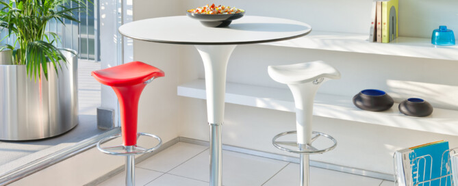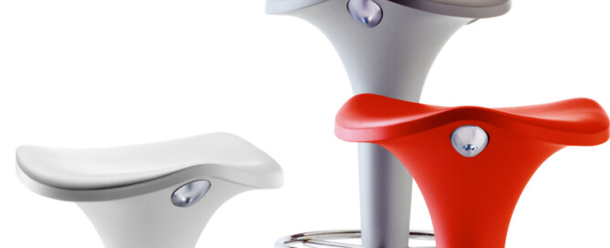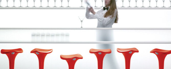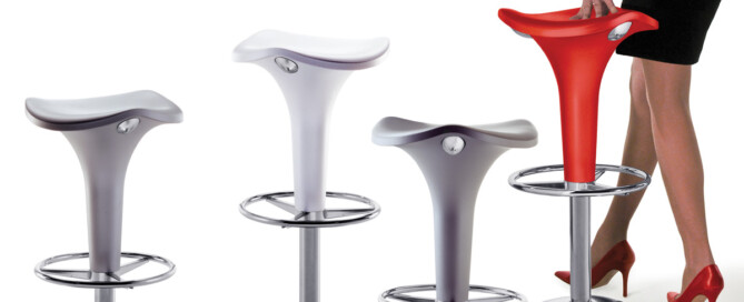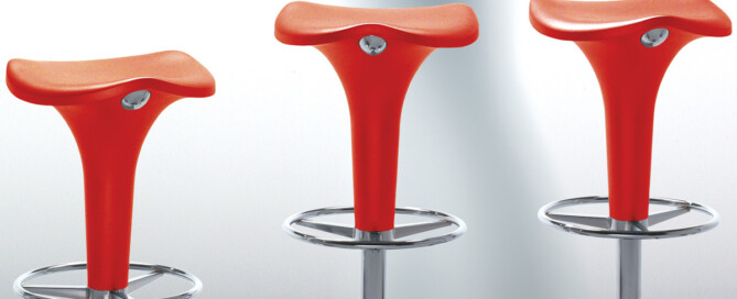 ZANZIBAR Height adjustable and fixed height stools. Engineering polymer seat and cone with chromium plated push-buttons. Leg, foot-rest and base in chromium plated steel. Floor protection in rubber. Seat and cone available in white, read, black and pearl grey. Available with a floor fixed option. Brand: Rexite Designer: Raul Barbieri Country of Origin: Italy
