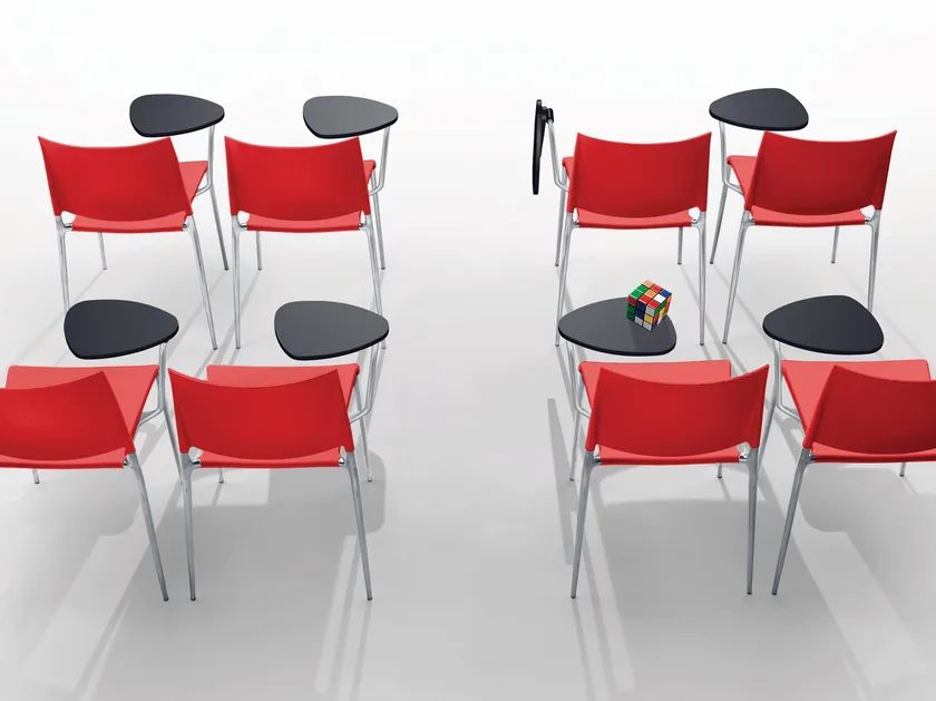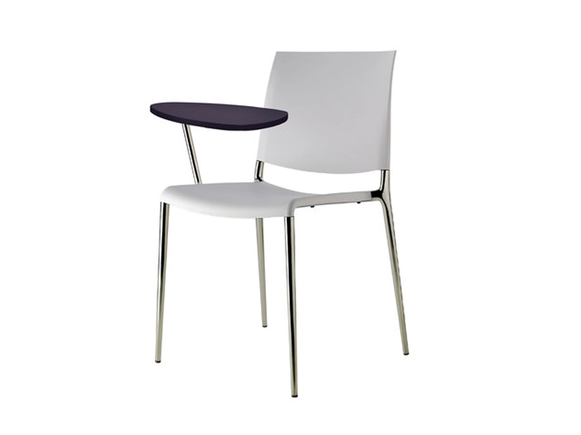 This stacking chair has a left or right writing tablet with antipanic hinge. The tablet is made from black engineering polymer. Chairs can be stacked up to four seats high. This is an elegant seat with fine lines in die cast aluminium that can be either polished, painted with scratch-resistant paint or chromium plated, it adds class to any space.