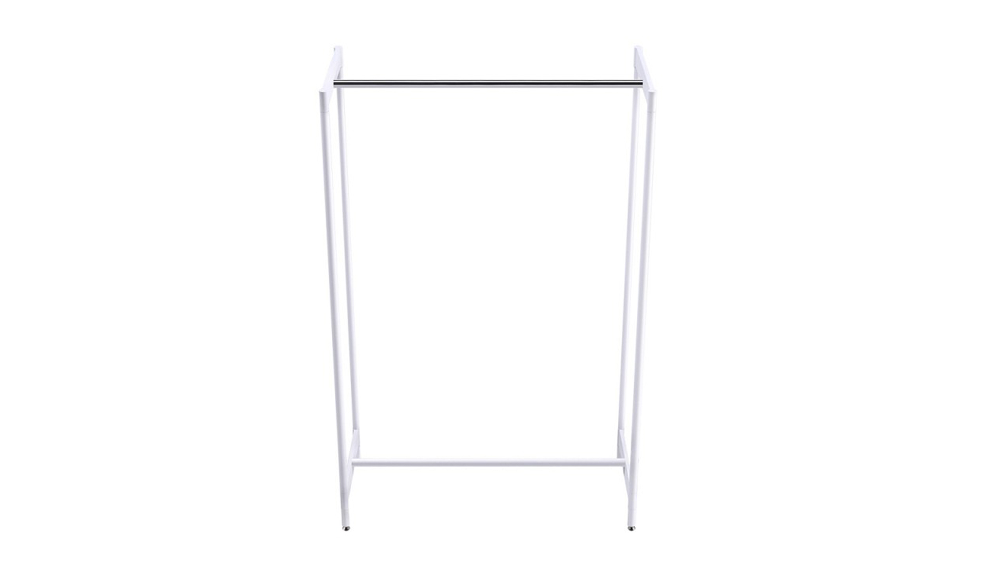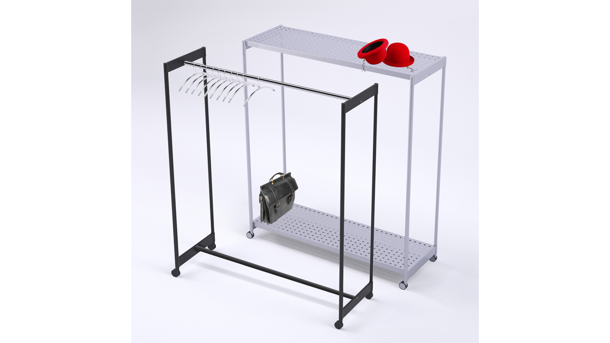 This coat rail is available in two lengths. Its minimalist design is highlighted by the elegant perforations of the optional service shelves that can be placed at the top or bottom and easily swapped at any time.
