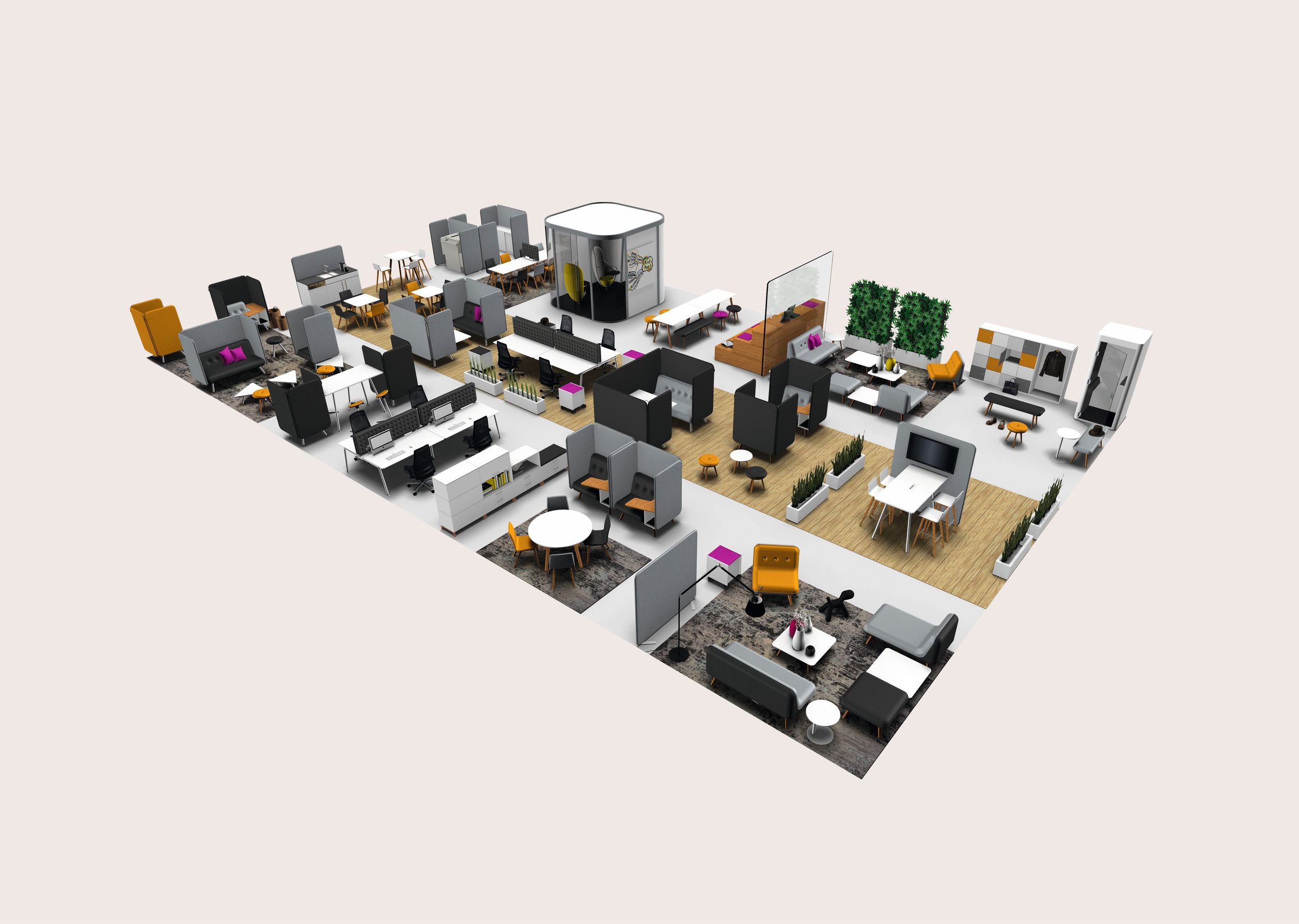 VARIETY AND STYLE FOR A NEW WAY OF WORKING – Wherever work is being done, it is always better when people feel comfortable – in a meeting or in a quiet zone, sitting or standing, talking or thinking. The welcome is an important part of our culture. In the same way, one’s arrival in the workspace plays an important role for our whole work culture: with Net.Work.Place Organic you greet clients, employees, suppliers and visitors in style, in spaces which combine function with atmosphere. The best basis for good and lively teamwork..