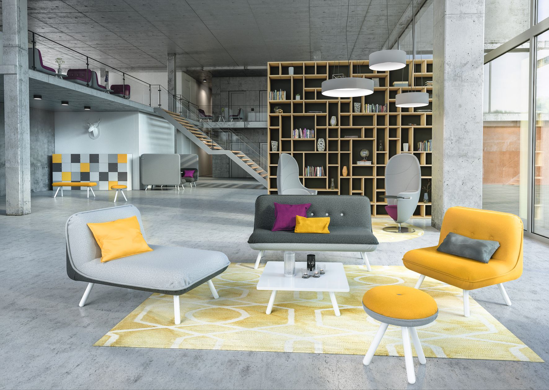 COSY UPHOLSTERED ELEMENTS AND SCREENS – they offer individual possibilities for withdrawal and regeneration. The use of two colours provides great scope for creative design.