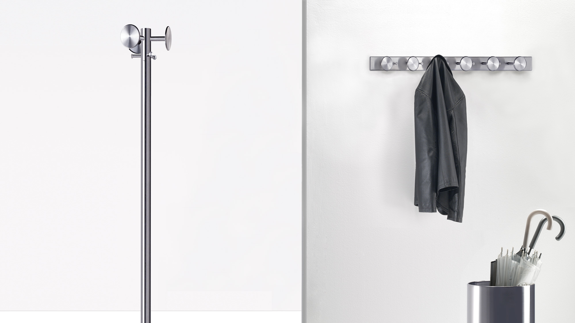 With minimalist lines and a big personality, the Nox Ego is made of brushed stainless steel, with a central core in refined precision casting supporting four arms that end in perfect discs. The coat stand has a polyester floor protection seal.